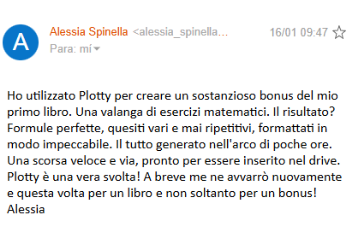 I used Plotty to create a substantial bonus for my first book. An avalanche of mathematical exercises. The result? Perfect...